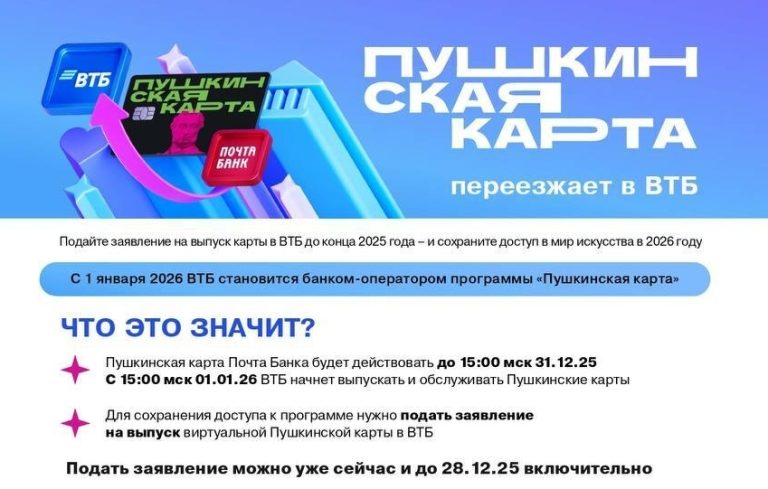 Владельцам «Пушкинских карт» необходимо до 28 декабря подать заявление на перевыпуск карт Как сообщили в