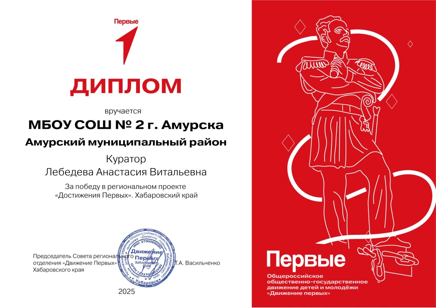 Поздравляем команду первых нашей школы и их руководителя Анастасию Витальевну ЛЕБЕДЕВУ с победой конкурсе «Достижения первых»!