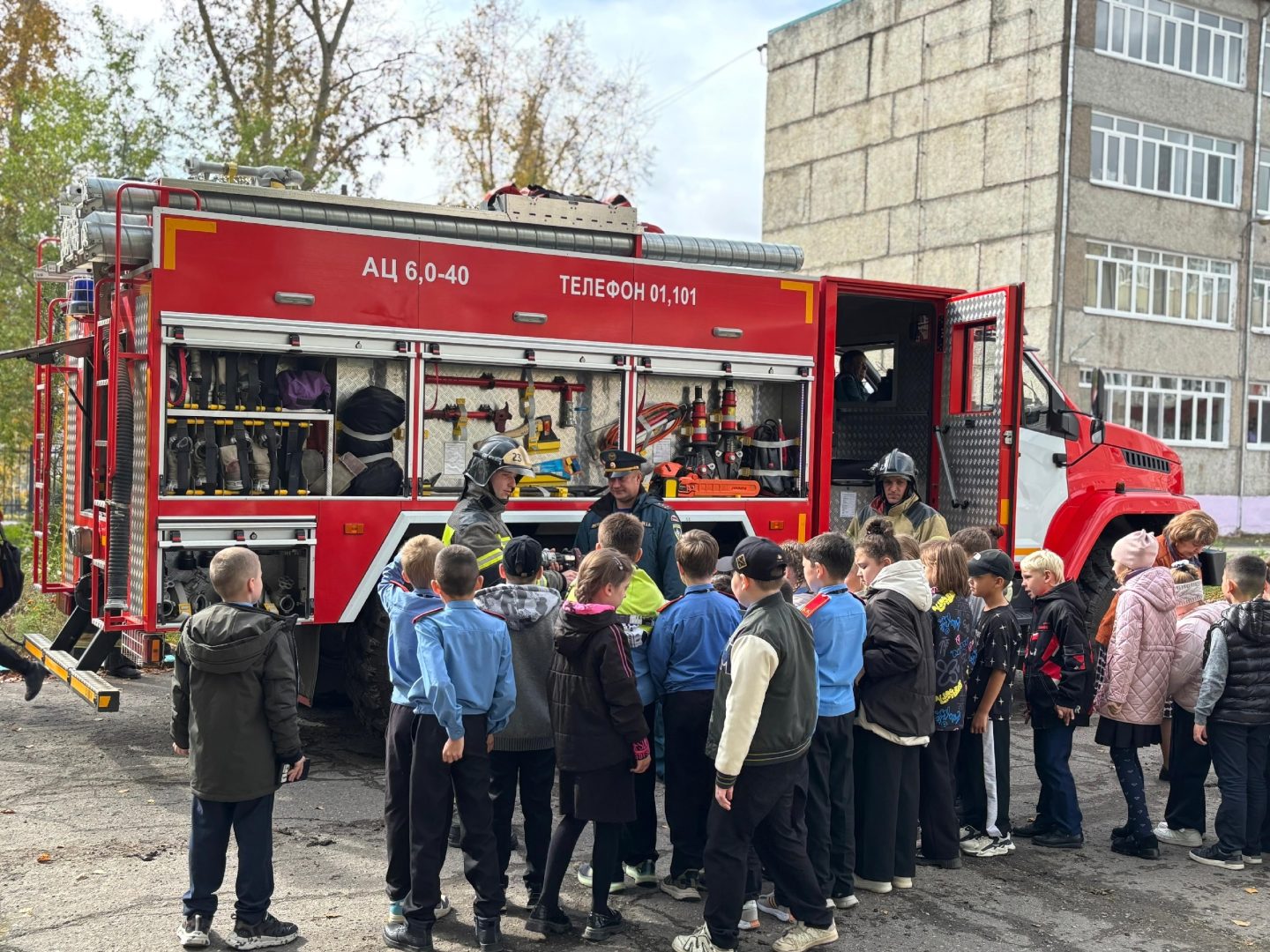 Ребята из 2А и 3А классов 25 сентября прямо во дворе школы встретились с гостями из пожарной части. Детям продемонстрировали работу механизма подачи воды, разрешили лично ознакомиться с устройством специальной техники изнутри. Школьники смогли посидеть в кабине пожарной машины и внимательно изучить её устройство. Школьники получили незабываемые впечатления от встречи с настоящими героями нашей жизни.